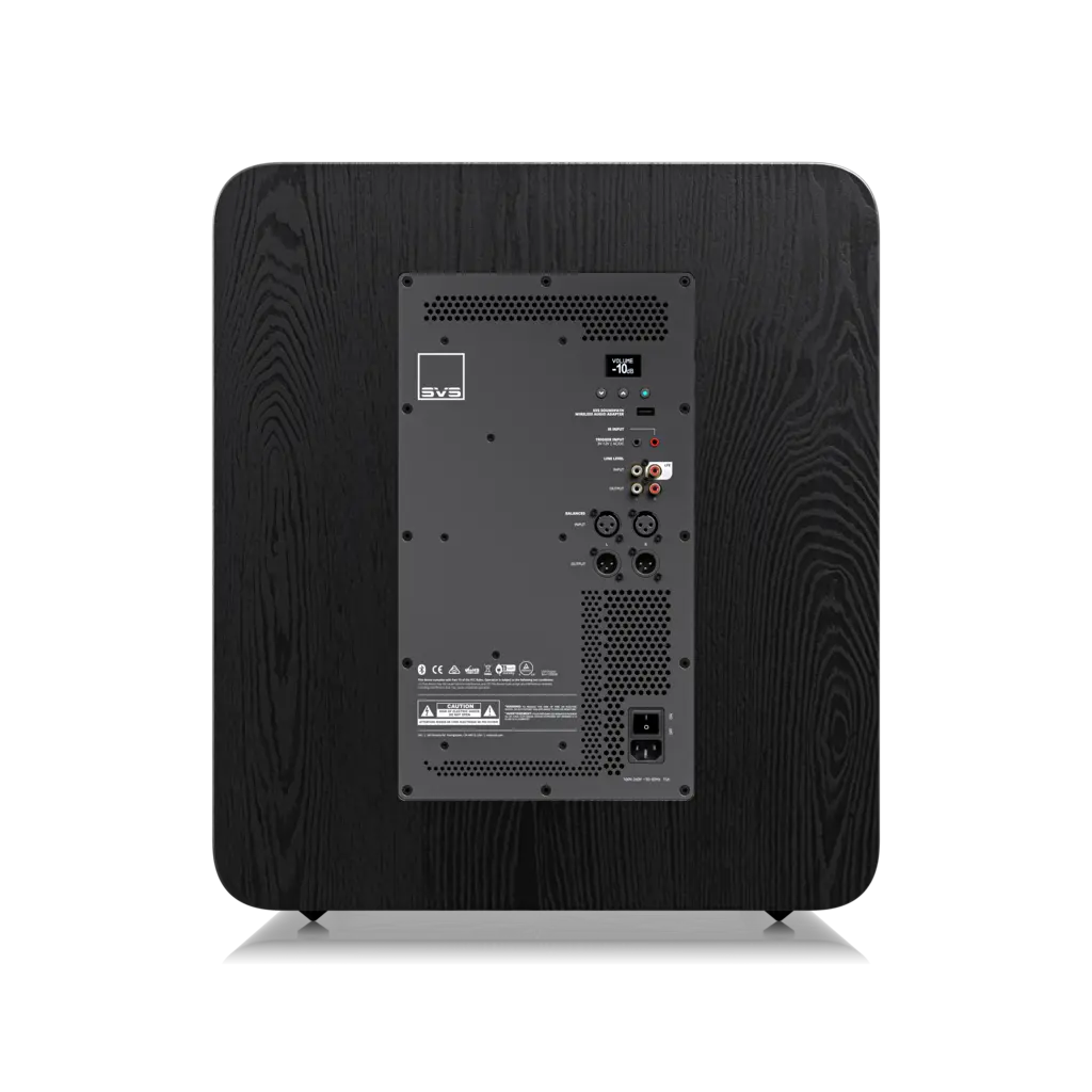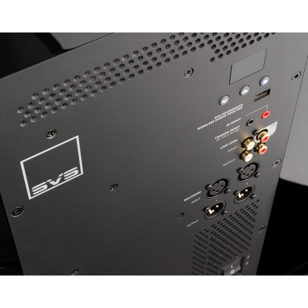 Laat je kiezen tussen maximale diepe extensie of strakkere, meer gecontroleerde bass – afgestemd op jouw ruimte.OLED-bedieningspaneel achteraan + SVS app